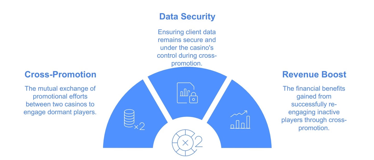 Database Cross-Promotion: Casino A sends 5,000 emails to dormant players, promoting Casino B. In turn, Casino B does the same for Casino A.